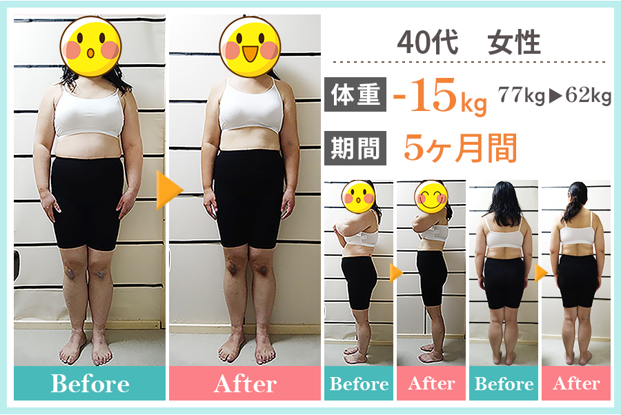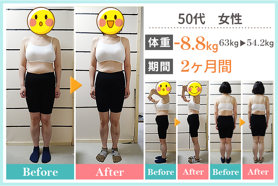 でもスタッフのみなさんが、私ができることを一緒に考えてくださって、コツコツと頑張った結果、目標どおり、3か月で-10㎏を達成しました。