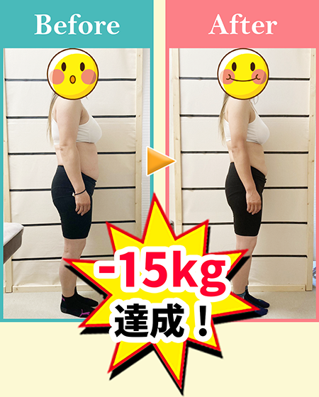 麗奈さんにLINEでもサポートしていただき、その通りにやっていたら、みるみるやせていき、最終的には-15㎏を達成できました。 毎回楽しくて、終わるのがすごくさみしいですが、このままリバウンドしないようにこの生活を続けていければと思っています。